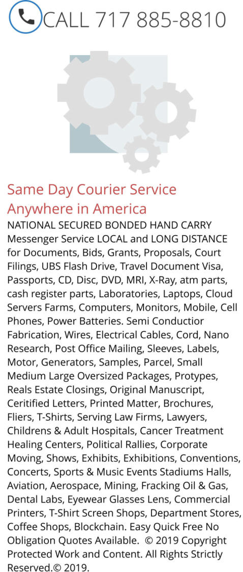 Delivery • Courier Service Offices • Residential Courier service • Household Courier service • Business courier service• Specialized Delivery and Pickup • White Gloves Delivery• Mining Delivery • Gas Fracking Parts Delivery • Expedited Delivery • Expediting Company • Take Off Courier Service • Restaurant Supplies Delivery • Messenger Service • Furniture Delivery • Furnace Delivery • Boiler Delivery • Heating & Cooling Parts Delivery• Will Call Pickup and Delivery • License delivery • Registration delivery • Interstate Delivery • Intrastate Delivery • Local Deiivery Tracking • Long Distance Couriers • Local Couriers • Local Messengers • Hardware Delivery • Plumbing Delivery • Parcel Service • Very Best Courier Service • Reliable Delivery Service• Dependable Courier Services • Trust Worthy Couriers • Drivers Delivery • Driving Couriers • Parcel Express Couriers • Small Package Express Couriers • Sameday Express Couriers • Large Packeage Delivery • Rush Sleeves Delivery • Rush Labels Tags Delivery • Cartons Boxes Delivery Service • fast banner Signs Delivery rush express same day sameday• Banner and Posters Delivery • Car Wash Parts delivery • Trailer Load Trucking TL LTL OTR Ground surface custom expedited usa parcel express small • Less Than Trailer Load Trucking • LT Trucking Company • LTL Trucking Services • Floral Deliveries • Samples Delivery • Priceless Artwork Delivery • Museum Delivery and Pick Up red lion pa usa • Fine Arts Delivery • Precious Jewelry Delivery • Paintings Delivery • Artworks Delivery • Refrigerated Delivery • Printed Matter Delivery • Brochures Delivery • Reefer Delivery • Cooler Delivery • Late Payroll Delivery • Frozen Food Delivery • Employee Payroll Courier Service • Medical Device Delivery • Photo Copier Delivery• Vaccine Delivery• Architectural Drawings Delivery• Blueprint Delivery • Hotel & Convention Delivery • Concierge Delivery • Medicine Delivery will call pickup and delivery same day nationwide usa america best• Time Piece Delivery • Theater Delivery • Trade Show Delivery• Convention Delivery • Appointment Delivery and Pick Ups • Movie Set Delivery • Computer Delivery • Film Editing Delivery • Server Delivery • Network Deliveries • Data Center Delivery • Power Plant Parts Delivery • Electric Plants Delivery • Plant Delivery • Electrical Parts Delivery • Server Down Delivery• Pharma Deliveries • Pharmaceutical Delvery Service • Replacement Part Delivery • Manuscript Delivery • Book Delivery• Television Station Delivery• TV Station Courier • Newspaper Delivery• Media Delivery• Publisher Delivery • Publishing Delivery • Author Delivery • Novel Delivery • Writers Delivery • Biotech Delivery • Ranch Delivery • Farm Delivery • Lab Sample Deliveries • Specimen Delivery • Life Sciences Expedite• Vaccines Expedite• Tissue Delivery • Organ Delivery • Construction Bid Delivery • Time Critical Delivery • Terminated Employee Delivery • Contract Delivery• Schedule Delivery • Contact Courier Service • Route Delivery • Long Distance Courier Service • Local Courier Service • ATM Parts Delivery • Nationwide Long Distance Delivery • Cash Register Parts Delivery • Treasuries Delivery • Cash Delivery • Bonded Delivery • Stocks Delivery • Bonds Delivery • Certificate delivery• Notary delivery• Notarized Courier Service • Certified Documents Delivery• Original Documents Delivery • Courier Service Offices • Industrial Courier service• B2B Courier service• B2C courier service • Linehaul Delivery and Pickup• Ocean Freight Pick Up • Ship Engine Parts Delivery • Overnight Delivery• Next Day Delivery • Hand Delivery • Motor Racing Parts Delivery • Restaurant Rush Delivery • Open 24 Hours Courier Business • Food Delivery • Imported Flowers Delivery • Export Delivery • Export Pickup • Import Delivery• University Delivery• College Delivery • School Delivery • Import Pickup • US Customs Paperwork Pickups and Delivery • Domestic Delivery • Financial Service Delivery • Private Banking Delivery • Wall Street Delivery Service • Federal Reserve Courier Service • Major Cities Delivery Service • Village Courier Service • Small Towns Delivery Service • Metropolitan Cities Courier Service • Art Gallery Delivery • Art Dealer Delivery • Car Dealer Delivery • Resort Delivery • Casino Delivery• AC Parts Delivery • HVAC Delivery • Automotve Parts Delivery • Classic Cars Delivery • Corporate Courier Service • Personnel Courier Service• Human Resources Courier Service • HR Delivery Service Transportation Logistics Service Nationwide | Courier Service US | Courier Service Mid Atlantic States | Courier Service Northeast | Courier Service New England States | Courier Service Central US | Courier Service Midwest | Courier Service East Coast | Courier Service West Coast | Courier Service Southwest | Sameday Courier Service Eastern Seaboard | Courier Service East Coast Corridor |